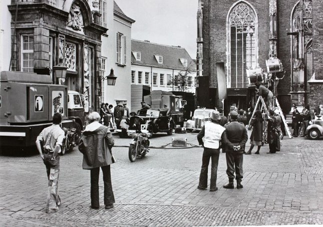 Filmopnamen " A bridge too far " in Deventer, soldaten trekken over de brug *18 mei 1976