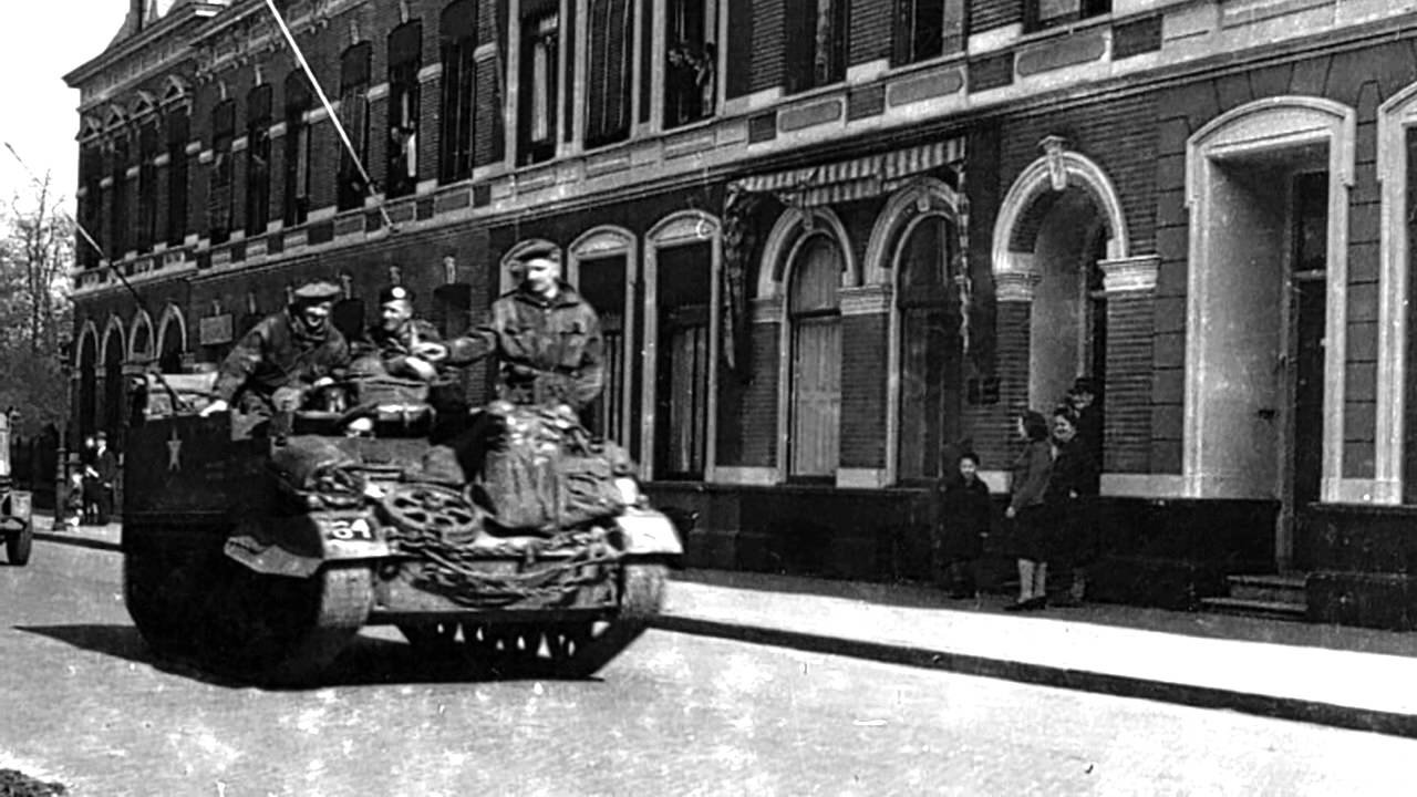 Canadese infanteristen van het Canadian Scottish Regiment via de Hoge Hondstraat en President Steynstraat onderweg naar de Diepenveenseweg