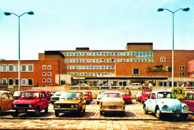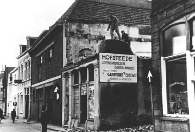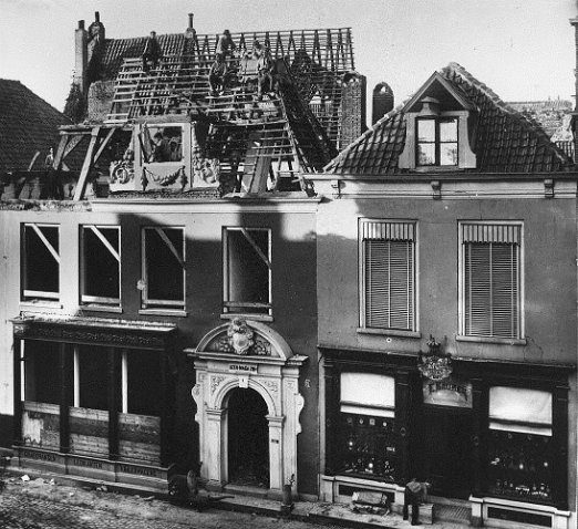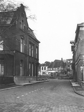 Grote en Voorstergasthuis, vanaf Hagensteeg na het bombardement